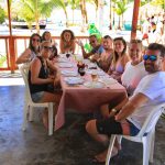 Au menu, poulet grillé, côtes de porc, poissons frit ou langouste (en option suivant la période), accompagné de riz blanc, pommes de terre, spaghettis, crudités,et fruits frais, le tout arrosé de Rhum, vin rosé à table. Mais aussi, sodas et eau minérale. Dans un décors de rêve !